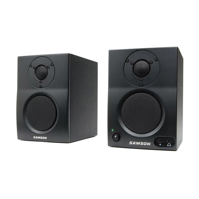 COUPLE OF ACTIVE STUDIO MONITORS Monitors of 30W per side. 1 x 3 with 25mm tweeter. Signal input via RCA, auxiliary signal input on 1/8 jack and Bluetooth (R). Headphone output. 1 of the boxes incorporates the amplification. AV shielded for multimedia applications. Price per couple.