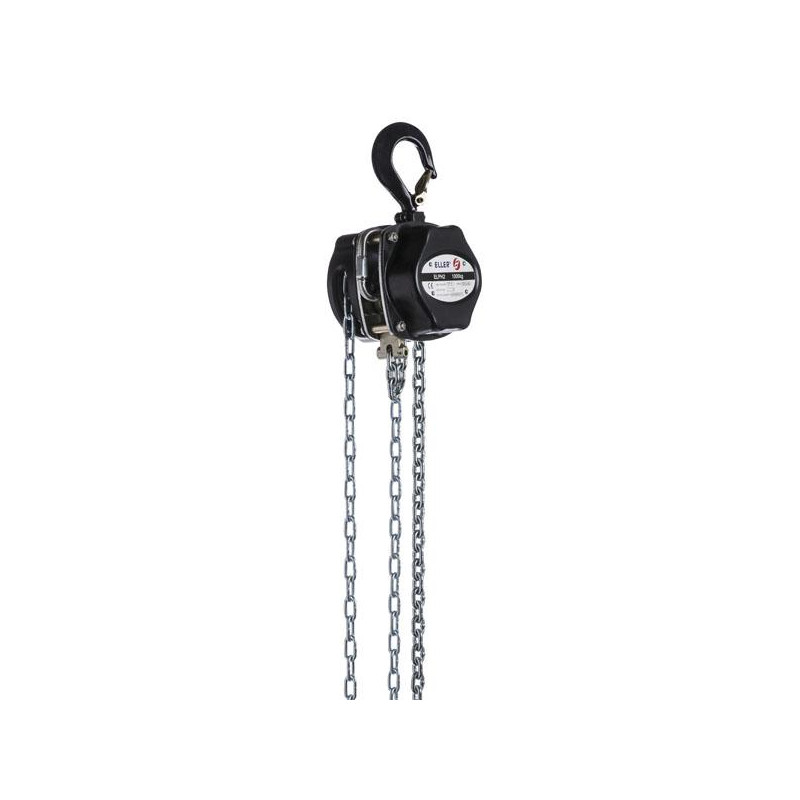 This manual chainhoist (parts and housing) is protected against corrosion. Both hooks, made of heat-treated tempered steel, are equipped with robust forged safety catches. The chain is European Grade 80 tempered and galvanized load chain according to EN-818-7. Precision bearings support the pinion shaft for smoother operation and increased mechanical efficiency