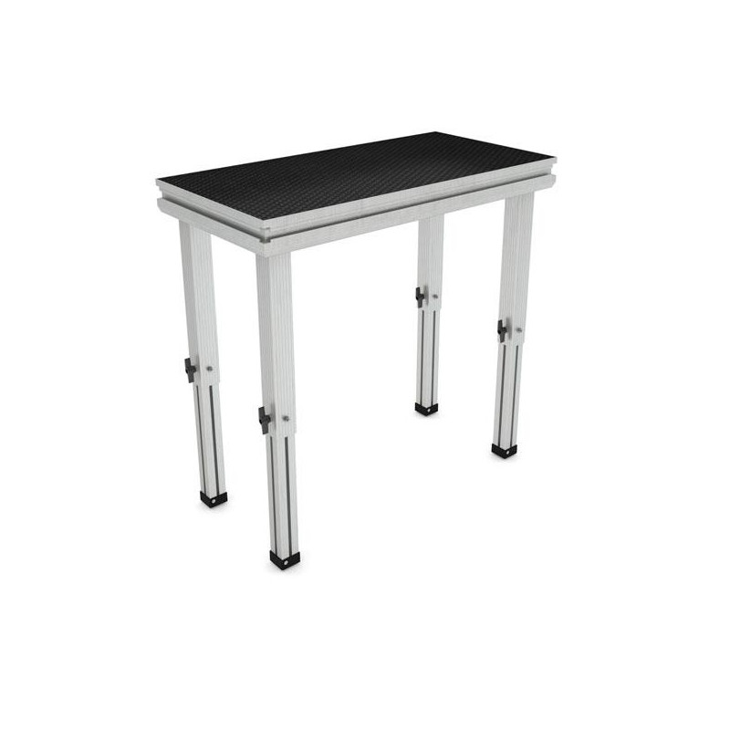 Our Spider Dex range is the solution for every indoor or outdoor venue or event where the requirements are high. With a load capacity of 750kg /m2, a sturdy design with 12mm waterproof plywood, 90mm aluminium profile and a non-slip surface, the Spider Dex are the right tool for the job. Available in four different sizes and even a 1mtr quadrant, you can create your own stage according to your wishes. The legs are available in five different standard sizes, in two telescopic versions and two versions with wheels for easy handling. For transporting the Spider Dex stages you can use the three available trolleys. And to complete you stage, stopbars, guardrails and stairs can be added to your design.