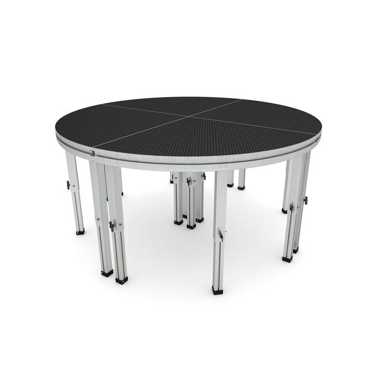 Our Spider Dex range is the solution for every indoor or outdoor venue or event where the requirements are high. With a load capacity of 750kg /m2, a sturdy design with 12mm waterproof plywood, 90mm aluminium profile and a non-slip surface, the Spider Dex are the right tool for the job. Available in four different sizes and even a 1mtr quadrant, you can create your own stage according to your wishes. The legs are available in five different standard sizes, in two telescopic versions and two versions with wheels for easy handling. For transporting the Spider Dex stages you can use the three available trolleys. And to complete you stage, stopbars, guardrails and stairs can be added to your design.