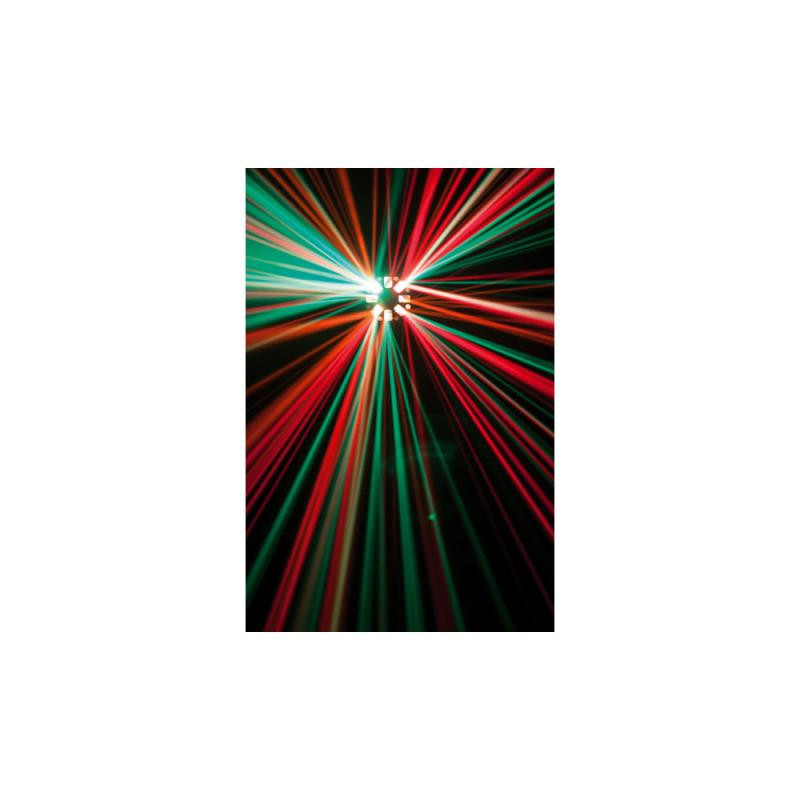 The Showtec Dominator is a 3-in-1 light effect that combines 8 powerful white strobe LEDs, a 200mW RG laser module and 3Watt RGBWA LED effect. All 3 effects can be selected separately in auto or music controlled programs. It can also be controlled by DMX to give you full control of all features. The RG laser has many versatile grating & burst effects and is equipped with a key lock and remote interlock. The strobe has 8 sections with different preprogrammed patterns. All RGBWA colors can be selected individually or in many preprogrammed combinations. If you have multiple Dominators the master/slave function can be used to create a synchronized lightshow. If you need one solution to get a Strobe, a Laser and a colorful LED light effect with full control of all features, the Showtec Dominator is what you are looking for.
