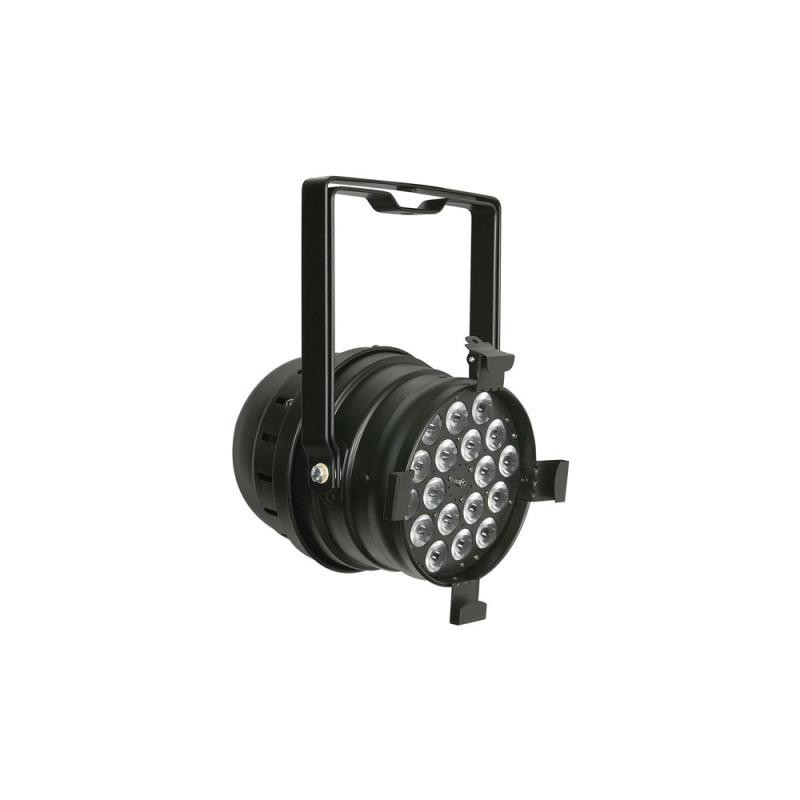 The Showtec Q4-18 parcan has a true RGBW color mixing, offering vivid colors as well as the possibility to reproduce pastel colors. It is equipped with a double bracket ensuring multifunctional use.