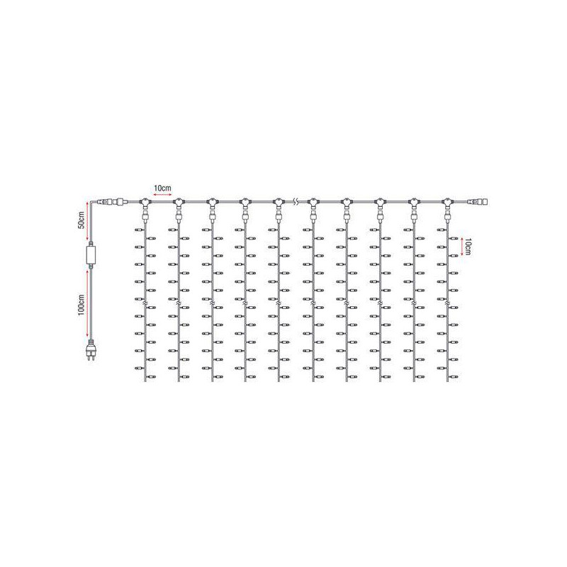De LED Curtain Light komt compleet met voedingskabel en is gebruiksklaar.
