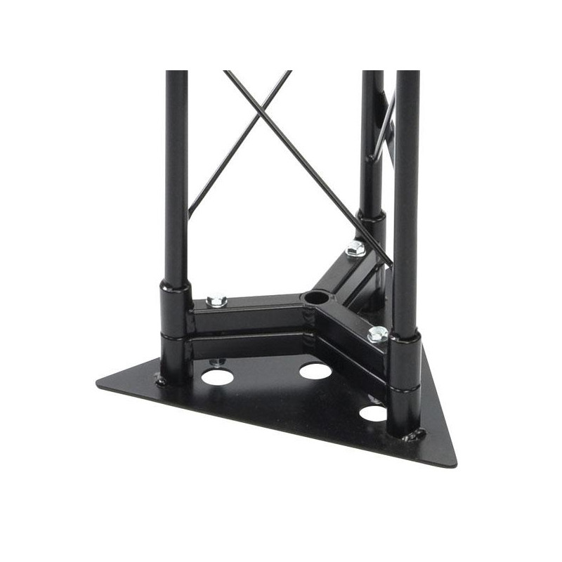 Fashionable truss, very well suited for small venues, boutiques or as decoration in discotheques or clubs. Available in lengths from 50cm to 150cm, a standard 90° corner, a horizontal three-way 90° corner, an Apex up down right 90° corner-piece and matching baseplate. The truss has been powdercoated in matte black.