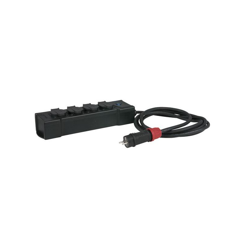The PowerBOX 4C has a 3,0m power cable with rubber male Schuko connector, and 4x Schuko power outputs.
