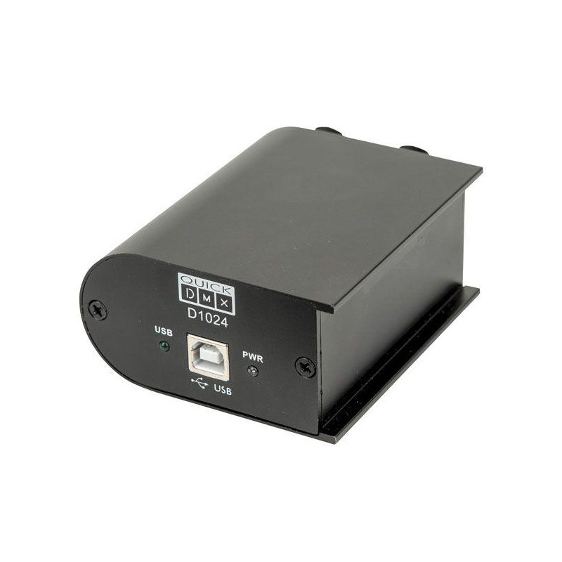 With the "D1024" interface it is possible to use Quick DMX software without any restriction for all 1024 DMX channels. This interface can store one scene or chase for 1024 DMX channels that will be played if connection with computer is lost. Please note that Quick DMX D1024 only works with Quick DMX software.