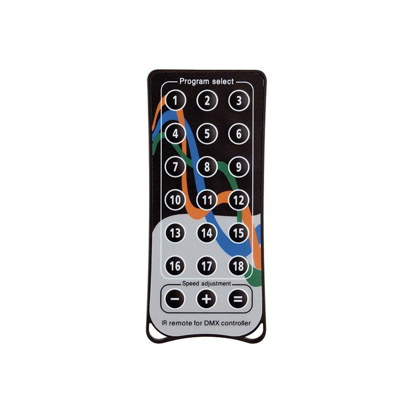 The IR Remote can be used in combination with the Quick DMX D512 plus interface to trigger 18 scenes or chases from its memory. It’s possible to use 4 scenes or chases simultaneously.
