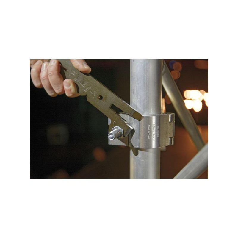 This Stage Tool is very nifty and offers you a M17 and M19 socket wrench, a cable stripper, a tool to loosen quick locks and wing nuts, M8/M10/M13 nut wrench, a knife and a bottle opener.