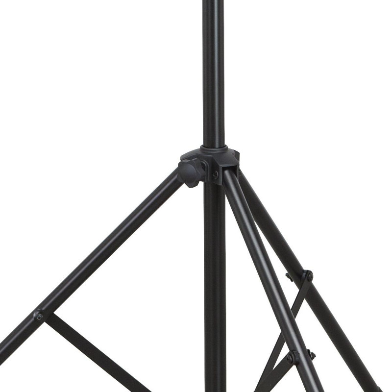 T-bar light stand built in steel to provide maximum reliability and strength, featuring foldable tripod for easy transportation. The snap lock holder on height adjustment collar prevents the safety pin from scratching the tubes finish during transportation.