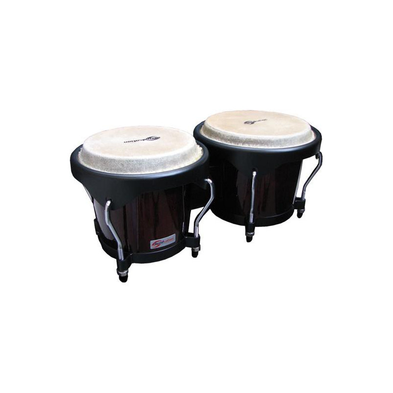 The BONGO is a typical percussion used in the Cuban music. The most famous configuration is compsed by 2 bongos: the small one called "MACHO" produces higher frequencies and the big one, called "HEMBRA" is dedicated to reproduce the low frequncies. The TOGO series satisfies the needs of every percussionist thanks to the SIAM OAK shells as well as the Satin black COMFORT Rims. All the heads can be replaced with genuine SOUNDSATION heads.