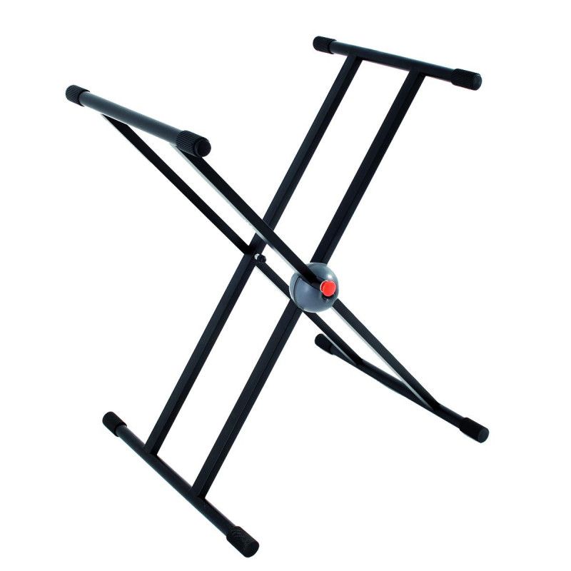 Expandable single frame keayboard stand. Sturdy construction, light and stable feauting an innovative adjusting sphere system. Epossidic painting ensures great durability. Max load: 50kg.