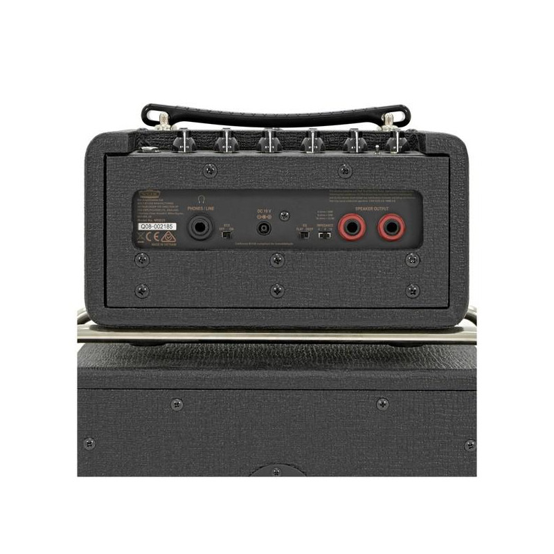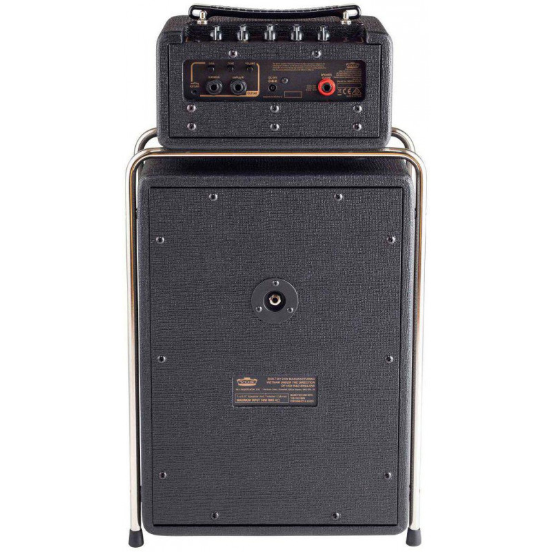 GUITAR STACK 'Mini Superbeetle 25 Stack. Inspired by the classic stacks of the British Invasion of the 1960s, adding the latest NuTube (6P1) analog technology for authentic tube sound. With the iconic chrome mount and classic VOX design. With traditional VOX AC sounds. Controls: GAIN, TREBLE, BASS, REVERB, TREMOLO, VOLUME, EQ FLAT / DEEP, ECO ON / OFF. Max power 50w (4 ohm). Open-back speaker with 1x10 ”Celestion Custom Speaker. Digital reverb that simulates a Spring Reverb. Tremolo (NuTube). Line / Headphone Out for recording and practicing. Dimensions: Width 323 mm x Depth 180 mm x Height 596 mm. Weight: 8.7Kg. '