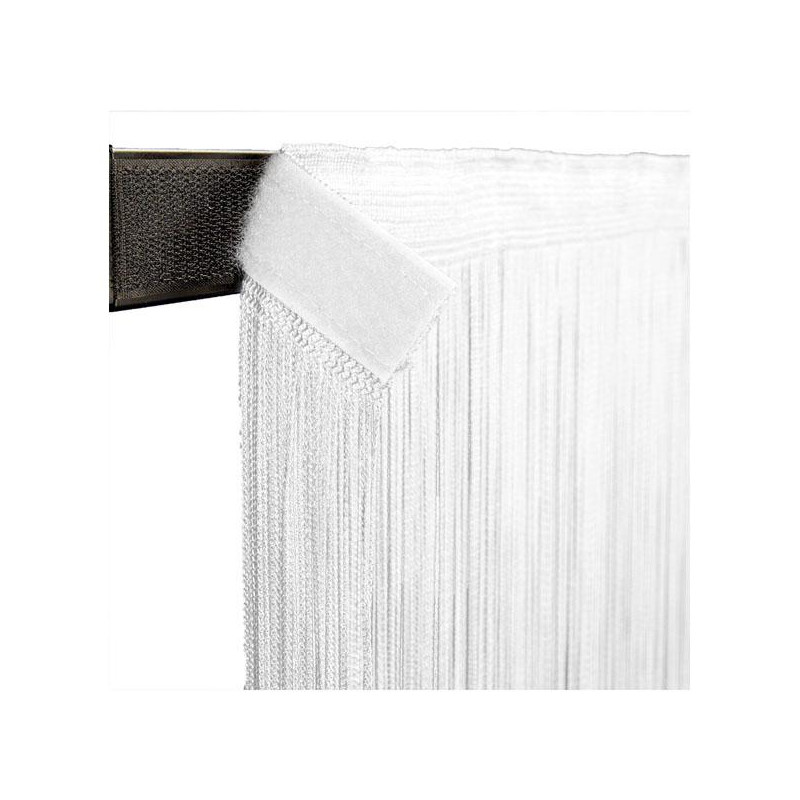 attached 25 mm soft velcro strap. Because of the Velcro it also is compatible with showtec pipe and drape system. They are available in 3, 4, 5, or 6m lengths and 3 colors, white, grey and black. The width is standard 3m. The String curtain can be cut at the preferred lenght using a household scissor without unraveling the strings.