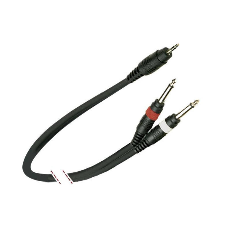 "Y" lead wire, special for audio. 2 x connectors Jack 1/4 "mono - 1 x connector Male Mini-Jack stereo Color identification 1 conductor 20 x 0.12 mm + mesh Black color Length: 3 m.