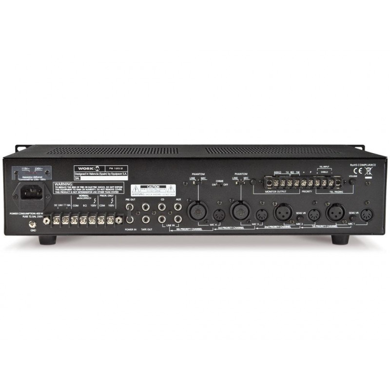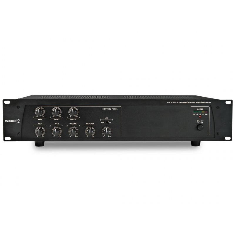 PA 120/2 is an installation amplifier with integrated mixer. It integrates 6 input signals with their own gain control, Master volume and high/low tone controls. PA 120/2 is distinguished by its two types of output: Music/Speech and Priority only. For maximum safety, they include a chime on/off switch, Tel/Emer connection for emergency communications and 24 V dc terminals for emergency power.