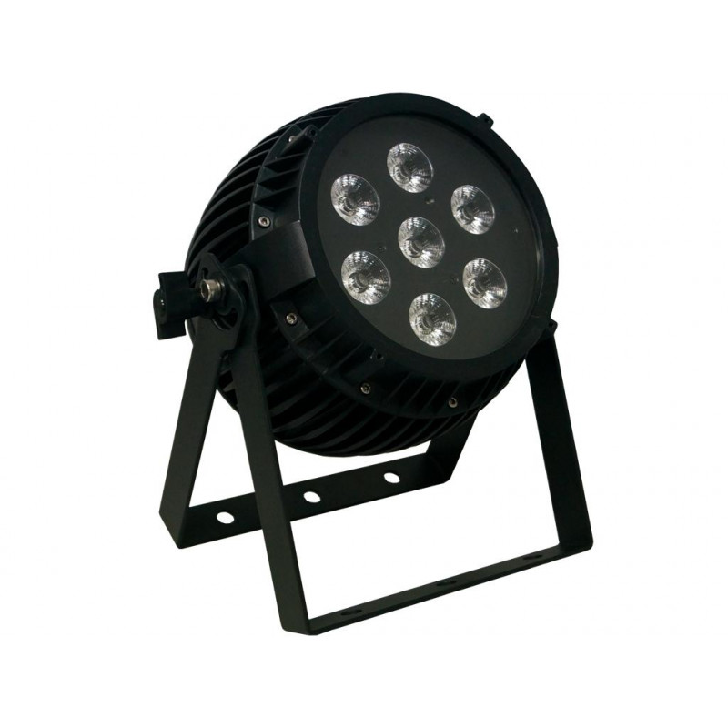 View larger LED WI 712 is a lightingprojector it incorporates 7LEDs 6 in 1 (R, G, B, A, W, UV) of 12W each one. The posibility of making the mix from unique lightpoint, it allows to produce a color with high uniformity when it lights up, walls, stages and specific places. Among its main features, it stands out its built-in battery because it allows to use the device being at maximum power during 3 hours. Likewise it is possible to control functions through wireless DMX, using the UNIVERSAL CONTROL DMX device as external controller. It has several performance modes: Auto (with several programs), master / slave and DMX. In the last mode, it's possible to select several channel modes: 12,9,7,6,5, including main dimmer, dimmers with primary colors.