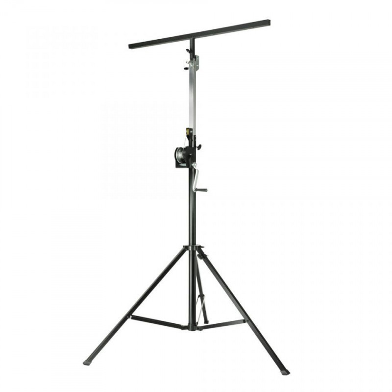 The SWU400T is an affordable lighting stand that features convenient height adjustment by means of a hand crank. Thanks to its high load bearing capacity of 85 kg, the removable crossbar, and the upper tube with a diameter of 35 mm, the SWU400T is also suitable for use as a speaker stand.