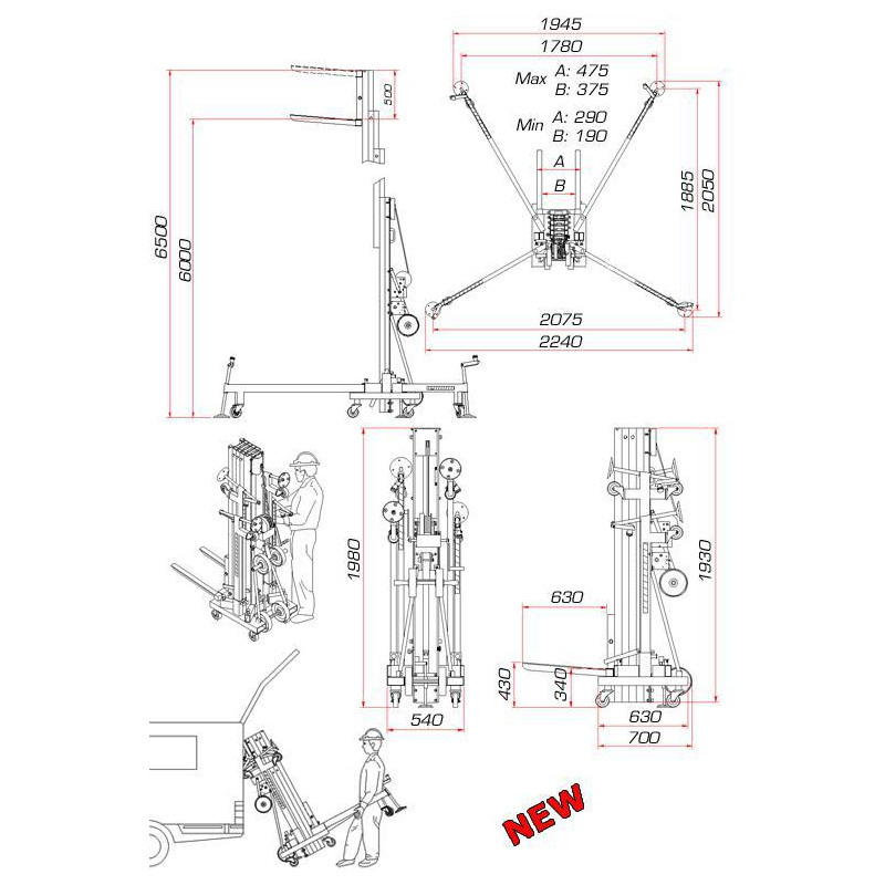 Lifting tower. Maximum height: 6.50 m