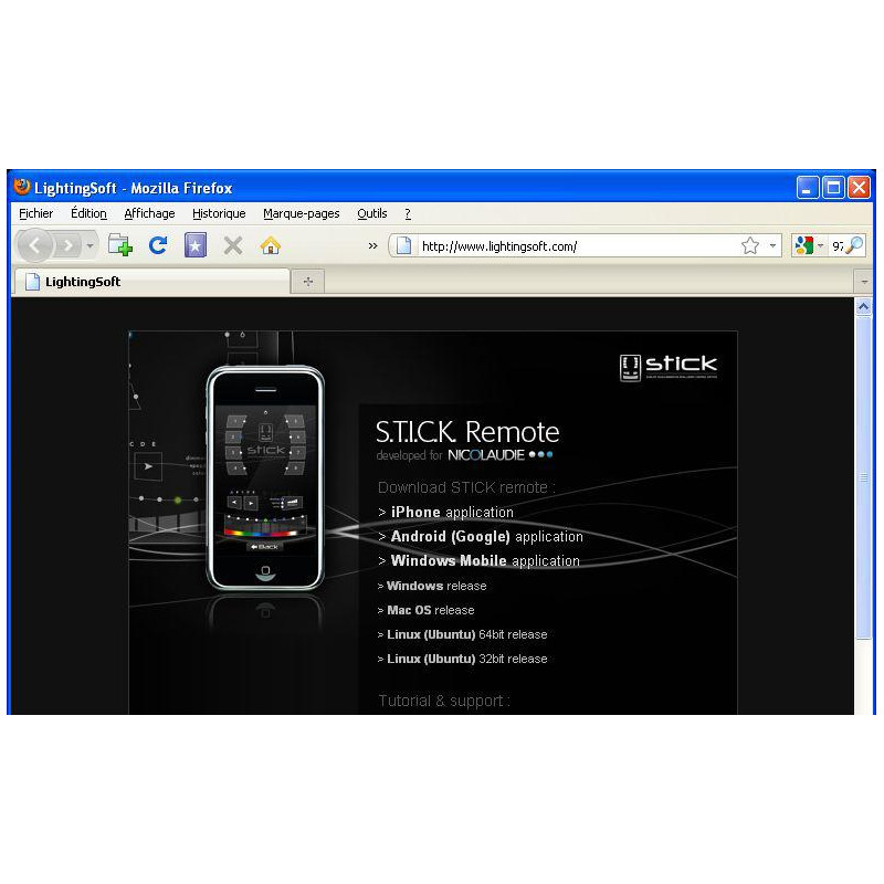 The STICK com+ package includes an Ethernet network add-on, allowing you to connect your STICK-KU1 to a Local Area Network (LAN). Once connected, you can download one of our STICK-KU1 remote control apps to your Apple iPhone, Google Android Phone or Windows Mobile phone and control the STICK-KU1.