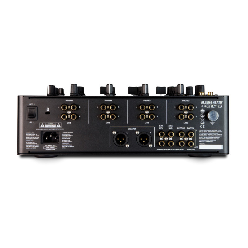 Diseñado pensando en los DJs y en los puristas de la música electrónica, Xone:43 es un mezclador DJ de 4+1 canales que ofrece la mejor calidad de audio analógico, incluyendo el legendario filtro Xone con control de resonancia, EQ de 3 bandas, crossfader con tres ajustes de curva y X:FX para disponer de envío / retorno hacia una unidad de FX externa. El crossfader dispone de 3 curvas conmutables para diferentes estilos de mezcla o scratching, y puede ser sustituido muy fácilmente o actualizado para disponer de un Innofader (se adquiere por separado) personalizado para disfrutar de un funcionamiento espectacular. Incorpora el filtro Xone original, que ya se ha convertido en legendario y que se sitúa muy por delante de sus competidores. El filtro incluye HPF, BPF, LPF, control de resonancia y barrido de frecuencia, además de la opción de direccionar X:FX al filtro. X:FX es un modo muy intuitivo y simple de trabajar con FX, ya que proporciona un único control por canal sobre el envío/retorno para trabajar con unidades FX externas. Para mayor creatividad, también es posible direccionar X:FX hacia el filtro Xone de modo que sea posible añadir capas de FX y filtrado. Dispone de cuatro canales fono/línea completos, y dispone también de una flexible entrada micro/auxiliar con conectores XLR y fono. Las salidas principales disponen de XLR balanceados y salidas independientes para cabina y grabación.