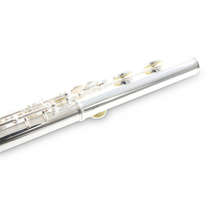 Cabeza. cuerpo. pata y llaves de niquel-plata. Platos abiertos. Sol alineado. Con topes de corcho natural. Topes de fieltro blanco. Pulsación modificada bajo llave de D#. Almohadillas PISONI. Con varilla y paño para limpieza. Estuche de madera con funda.