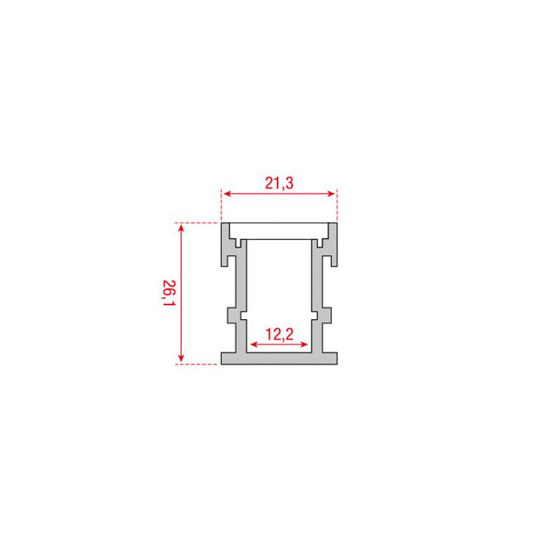 • Medidas: 2000 x 26,1 x 21,3 mm • Montaje: en superficie, 4 ganchos de montaje incluidos • Uso en interiores/exteriores: interiores • Cubiertas incluidas/excluidas: incluidas (1 cubierta PMMA ópalo mate + 1 cubierta PMMA semitransparente y capacetes)
