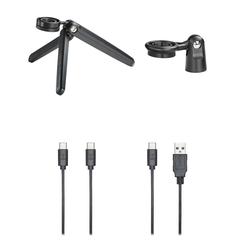 Micrófono de condensador de captación lateral con salida USB para una fácil conexión al ordenador Ideal para su uso en podcasting, grabaciones de estudios domésticos, grabación en exteriores y voz en off Conector para auriculares incorporado que permite monitorizar directamente desde el micrófono Dial en la parte frontal del micrófono que permite ajustar fácilmente el volumen Conversor analógico-digital de alta calidad con 24 bits y una frecuencia de muestreo hasta de 192 kHz Compatible con Windows y Mac Diafragma de baja masa que proporciona una excelente respuesta de frecuencia Patrón polar cardioide que reduce la captación de sonidos laterales y posteriores no deseados, mejorando el aislamiento de la fuente de sonido deseada Bajo ruido intrínseco, perfectamente indicado para los equipos de grabación digital Robusto trípode de mesa con patas plegables, fácil de montar y transportar Soporte para pedestal con rosca pivotante que se acopla perfectamente al trípode incluido o a un pedestal para micrófono convencional Fabricación robusta en metal para un rendimiento duradero Incluye dos cables de 2 m: USB-C a USB-C, USB-C a USB-A