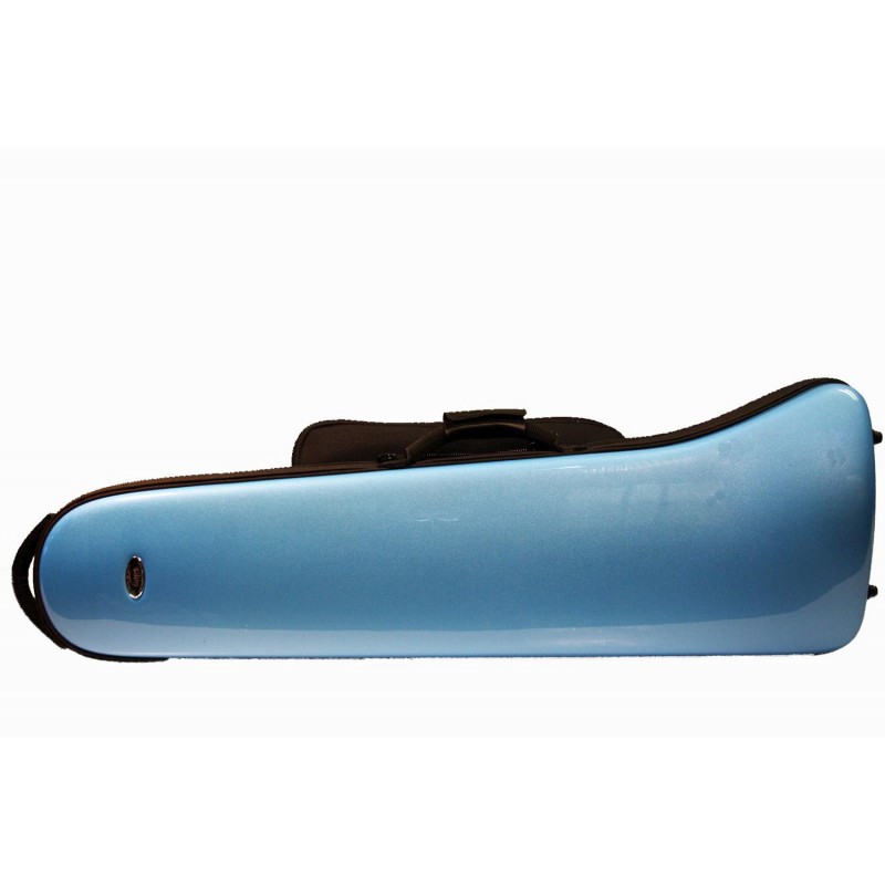 TENOR TROMBONE BAGS CASE L. Bell up to 21 cm. Evolution II, Metalic Finish in Blue Weight: 3,800 Kg. Made with the following materials: Interior: Poliespan structure and high-density polyurethane foam. Upholstered with high quality foamed Textile. Exterior: Glossy finish fiberglass structure. YKK zip closure. It incorporates two handles with a natural leather handle and a third handle in a vertical position. The EV-II model is the result of 3 years of evolution of the previous EV-I model in which we have worked to achieve the following objectives: -Do not allow the body or the rod to move inside the case. It has also been possible to eliminate the pads and tapes that did not completely impede movement. -Improve the protection of the rod. In this model, the rod is kept in a sleeve fixed to the lid that, in addition to protecting it, prevents it from damaging the bell of the instrument. -Increase the interior capacity to transport the largest number of accessories, for which two compartments have been designed inside and an area in which two nozzles can be located. -Enable that optionally can be attached to the case covers for the transport of costumes, laptops, music stands or mutes. Instrument compatibility: This model can be used for both traditional and open-wrap models with the transposers used by the most recognized brands worldwide (Bach, B&S, Conn, Edwards, Jupiter, Yamaha, etc.), which have a diameter hood maximum 21 cms.