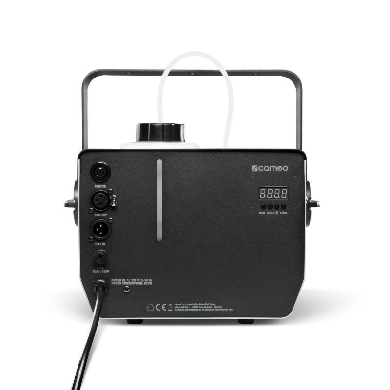 Puesto que los componentes están adaptados entre sí de manera óptima, se generan efectos de niebla perfectos. El elemento calefactor de alta eficiencia hace que el tiempo de precalentamiento sea de tan solo 2 minutos aproximadamente para generar el volumen de emisión máximo de 226 m³/min. Para ello, la máquina solo consume un máximo de 3,5 ml de líquido por minuto, y se puede utilizar líquido para efectos de niebla a base de agua, que es respetuoso con el medio ambiente. El depósito con iluminación bicolor e indicador del nivel de llenado tiene una capacidad de 0,8 l. No hace falta rellenarlo en la propia máquina: el depósito se puede extraer fácilmente y volver a colocar después de añadir el líquido.
