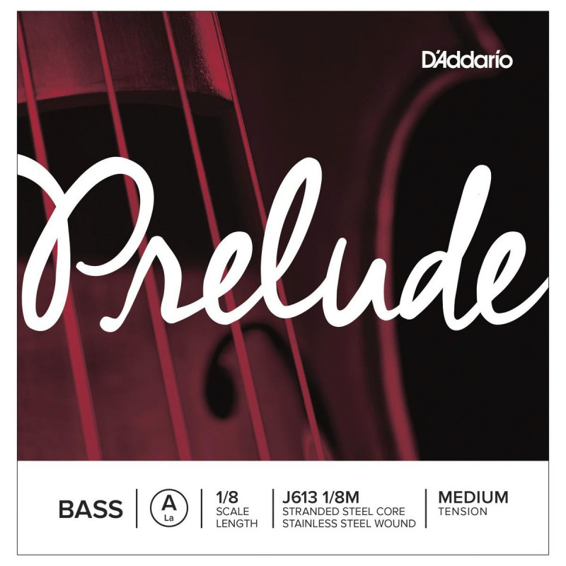 CUERDA SUELTA PARA CONTRABAJO Cuerda para contrabajo D Addario Prelude J613 1/8Medium La (A). Núcleo de acero trenzado y entorchado de acero inoxidable. Las cuerdas para Contrabajo Prelude tienen un multi-núcleo de acero trenzado que produce una calidad de sonido cálido, con buena respuesta del arco. El diseño especial del nucleo y reducción de la tensión hacen de estas cuerdas que sean fáciles de tocar, especialmente para los más jóvenes intérpretes en desarrollo. Ideal para uso en entornos educativos, las cuerdas de contrabajo Prelude mantiene un sonido claro y cálido que se mezcla bien en el conjunto.