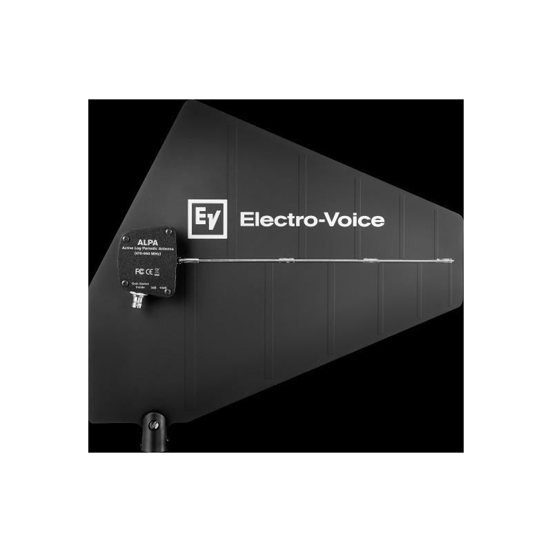ACCESORIO PARA RACK DE INALÁMBRICO Antena log periodica activa con ganancia conmutable entre 3 y 10 dB. Se monta en un soporte de micrófono estándar mediante su base roscada. Puede usarse conjuntamente con RE3-ACC-RFAMP para aumentar la ganancia. 470 - 960 MHz.