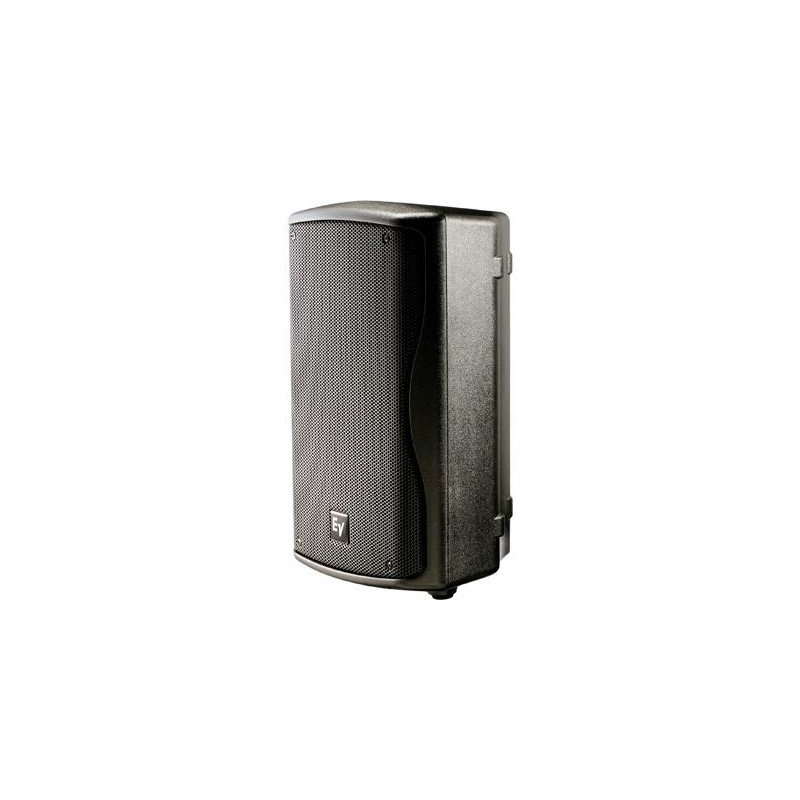 RECINTO P.A (PASIVO) Sistema compacto full range de 2 vías pasivas. Recinto con diseño irregular permitiendo el uso comomonitor de escenario, construido con moldeado de resina ABS inyectada. Incluye 1 asa integrada paratransporte y soporte para situar sobre trípode. Incorpora circuito de protección contra sobrecarga para todo el ancho de banda. LF: 1x altavoz con cono tropicalizado de 8' (EV8L). HF: 1x motor con diafragma de titanio de 1,25' (DH2005). Ángulo de cobertura: H 90° x V 50° (rotable). Respuesta -10dB:48Hz - 20kHz. FR: 200W / 8 / 94dB / 123dB. Conectores: 2x NL4. Dimensiones (HxWxD): 457 x 282 x 264mm. Peso: 8,4 kg. Acabado en color negro.