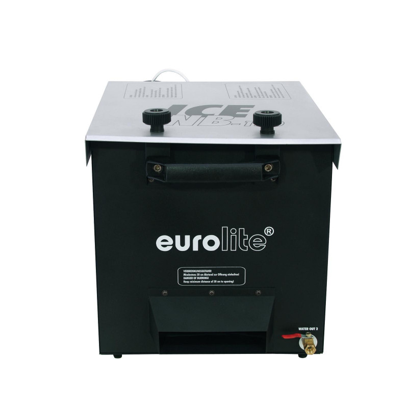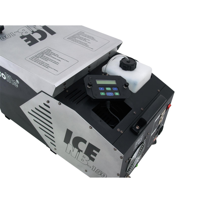 Nebulizador de piso simple con 1500 W, control remoto, enfriamiento con cubitos de hielo El nebulizador de tierra EUROLITE NB-150 ICE produce grandes cantidades de niebla de tierra baja. Es ideal para escenarios y discotecas. El NB-150 ICE puede sumar puntos con su corto tiempo de calentamiento y bajo consumo de líquidos. Funciona con líquido de niebla convencional y enfriamiento con cubitos de hielo. Para obtener 25 minutos de niebla continua a plena potencia, debe llenar el nebulizador con cuatro kilogramos de cubitos de hielo. Puede vaciar y limpiar fácilmente el NB-150 ICE a través del drenaje. El tanque es extraíble. El efecto de niebla se activa mediante DMX o mediante el módulo de control integrado con pantalla LCD. Alternativamente, puede controlar fácilmente el nebulizador de tierra con el control remoto con cable. Puede ajustar fácilmente la temperatura con el interruptor térmico. Los intervalos, la duración y la cantidad de niebla también se pueden ajustar de forma variable según sus requisitos. La robusta carcasa de metal está equipada con asas de transporte y ruedas de transporte.