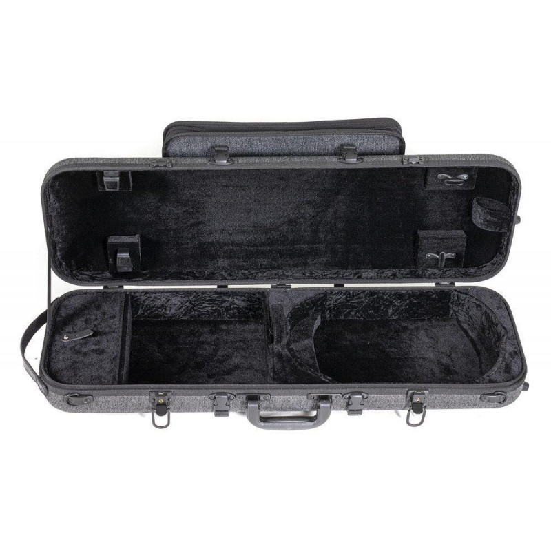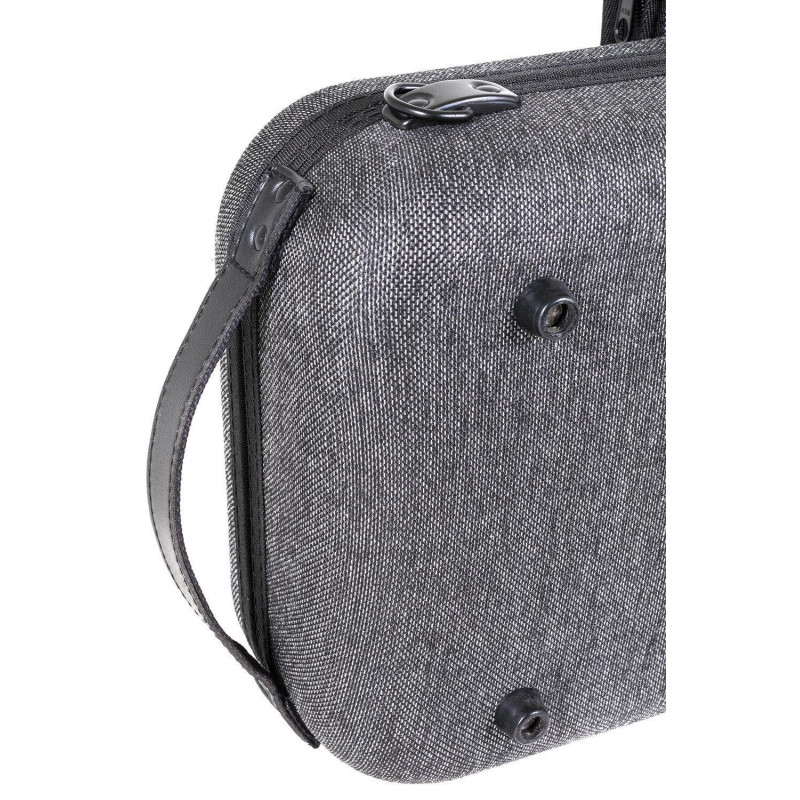 neue zeile. Casco de lino orgánico. Sistema acolchado de suspensión. Peso aprox. 2. 3kg. Asa blanda. Sujección giratoria para 2 arcos patentada GEWA. Compartimento para accesorios. 2 correas de mochila desmontables. Con funda para partituras y asa lateral. Exterior gris. Interior en felpa negro.