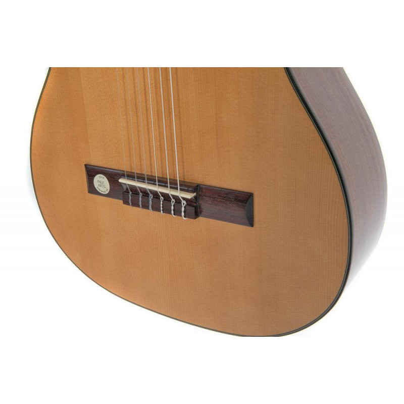 Mástil de arce tintado. Diapasón y puente de acacia o bubinga en función de la disponibilidad.