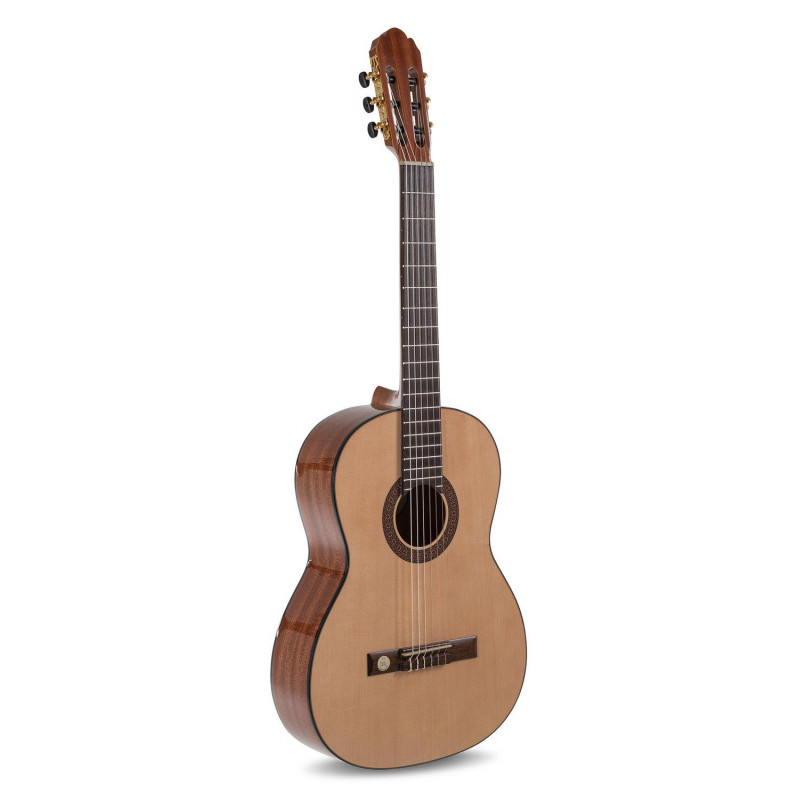 Mástil de caoba. Diapasón y puente de acacia o bubinga.