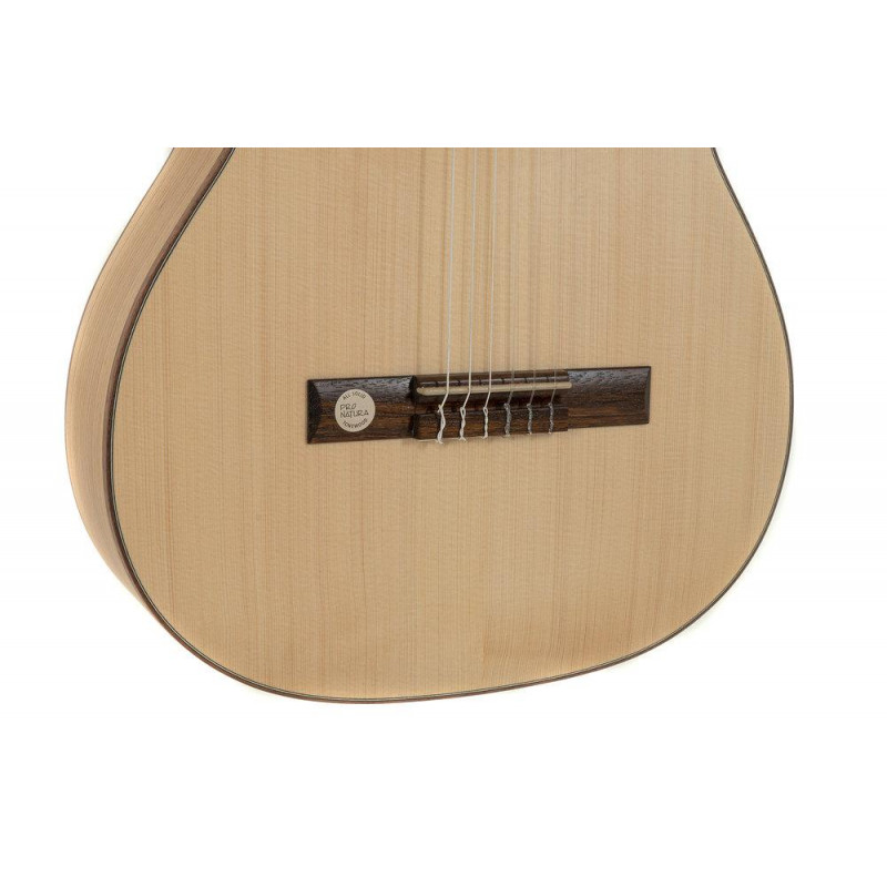 Toda maciza. Tamaño 4/4. Diapasón 650 mm. hueso 52 mm. largo 980 mm. Tapa de abeto maciza. Mástil de arce. diapasón y puente de acacia. Remates de 3 capas en tapa. 1 en fondo. Clavijero dorado con lira y palomillas acrílicas. Acabado semi brillante.. Made in Europe. Fondo y aros en cerezo macizo. Pala de cerezo.