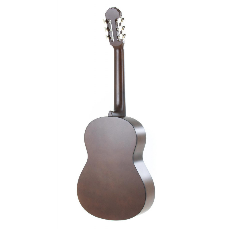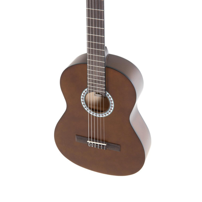 Cuerpo de tilo. Ribetes del cuerpo en ABS. Diapasón y puente en madera de Pakka. Trastes de níquel. Clavijeros cromados. Acabado de barniz mate. respetuoso con el medio ambiente. Tamaño 3/4. Para niños de 9-12 años aprox.. Escala 590mm. cejuela 47mm.
