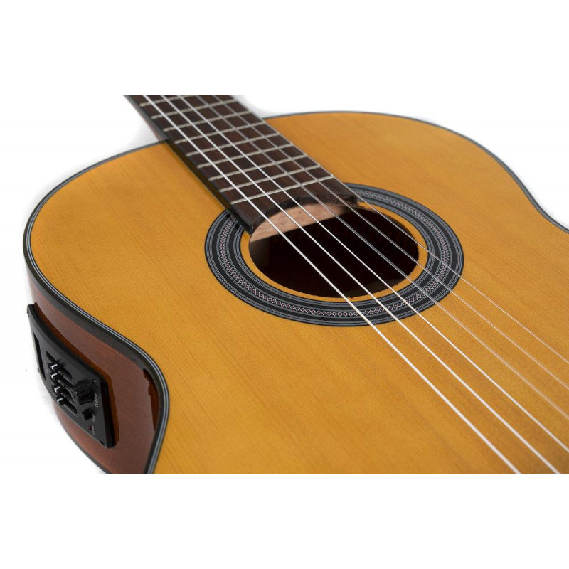 Pastilla piezoeléctrica. Ecualizador de 4 bandas y afinador.