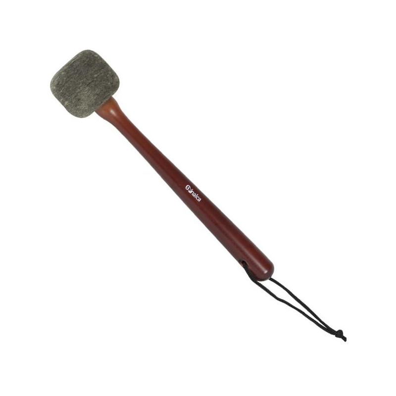 Mazas para bombos y timbales con la bola de fieltro y correa en el mango. Disponible en color natural, negro, morado, rojo y nogal.Largo total: 34cm. Bola: alto 5cm y ancho 6,5cm.Gonalca.