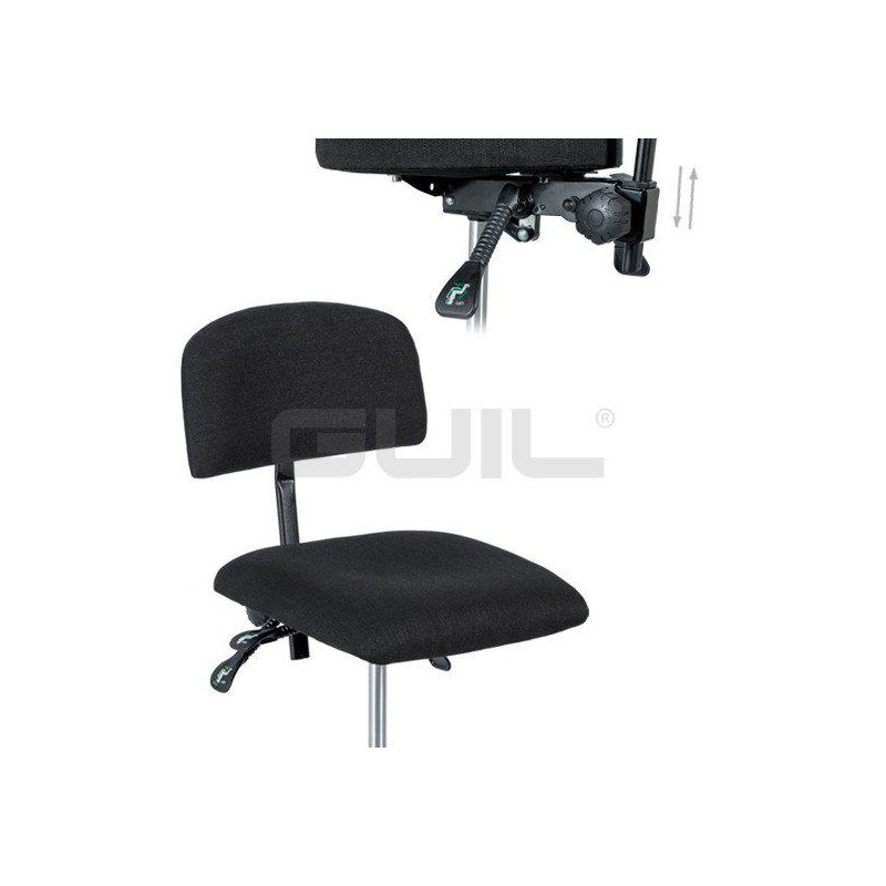 - Silla ergonómica para director de orquesta y percusionista con respaldo y asiento regulables.