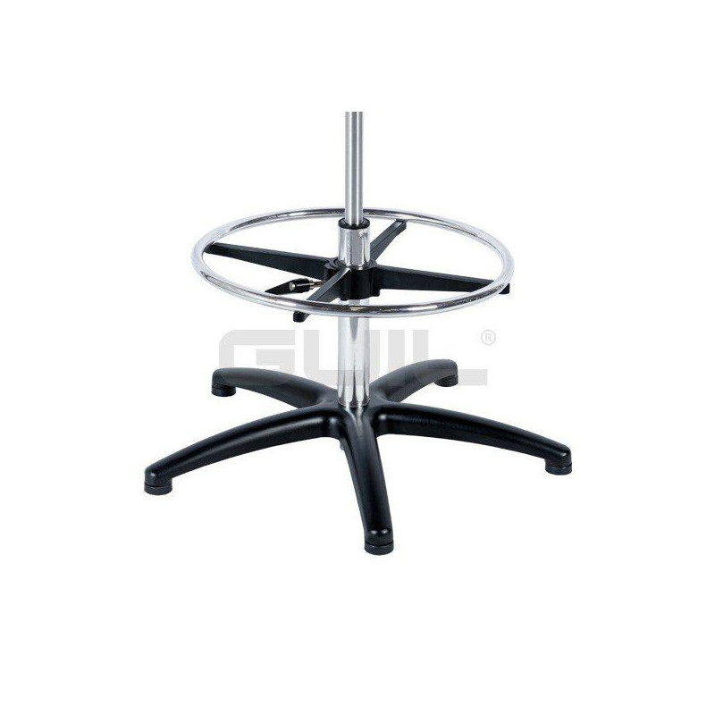 - Su base de cinco patas está fabricada en aluminio con acabado en color negro; el mástil central y el reposapiés tienen un acabado cromado pulido, combinando un elegante diseño, con una máxima estabilidad y resistencia.