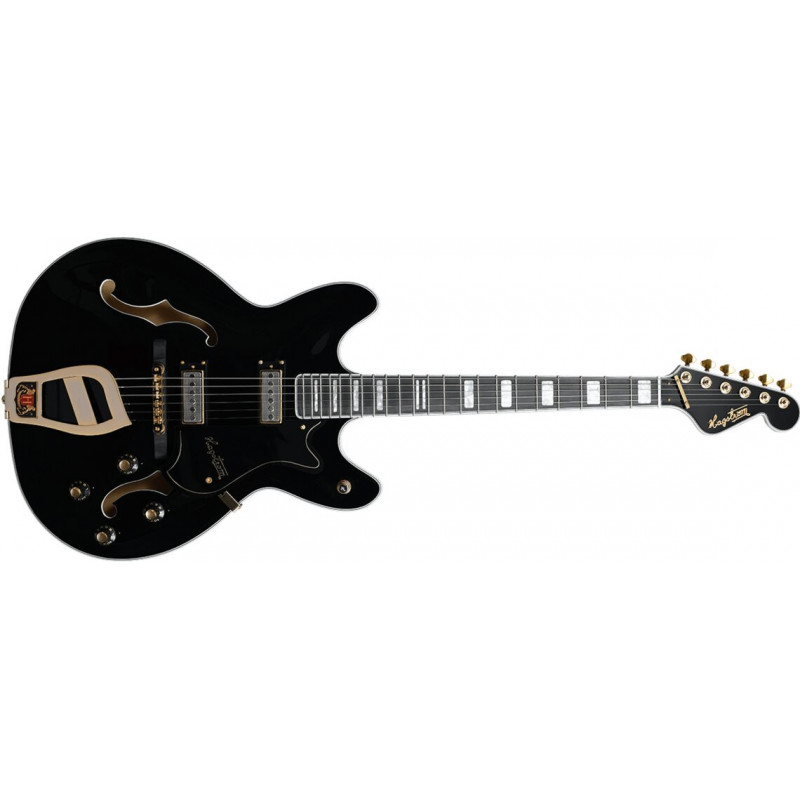 GUITARRA DE CUERPO SEMI-HUECO Guitarra eléctrica Hagstrom '67 Viking II en acabado Black, reedición de la viking original de 1967. Hagstrom retrocede en el tiempo y relanza el Viking II de 1967 tal como se produjo originalmente durante esta era dorada de la historia del rock 'n' roll. Esta guitarra Sueca fue pionera en su tiempo, influyendo en el mundo de la música (y en la cultura pop en sí) y siendo ampliamente reconocida en la televisión internacional, los medios de comunicación y a manos de algunas de las mayores leyendas de la música y antepasados del rock 'n' roll, como el rey del rock, Elvis Presley.
