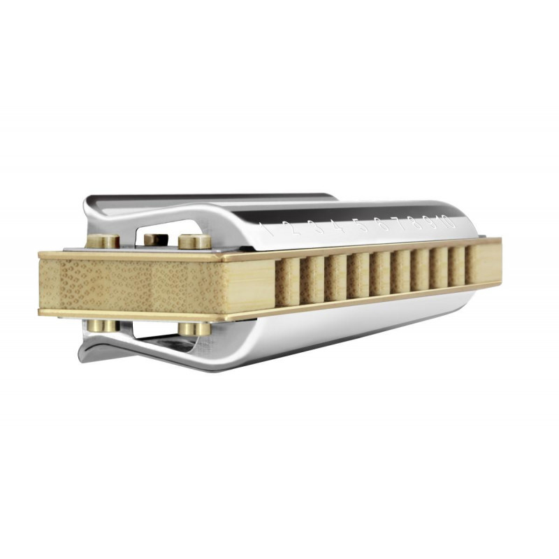ARMÓNICA DIATÓNICA Marine Band Thunderbird octava baja. Sistema Richter. Cuerpo de bambú con triple lacado para un sonido potente y un confort óptimo. Diseño de la cubierta inspirada en Joe Filisko. El nuevo desarrollodel perfil de caña permite tonos más profundos. Ranuras laterales acústicas.