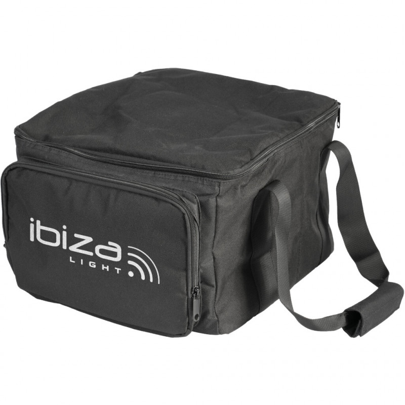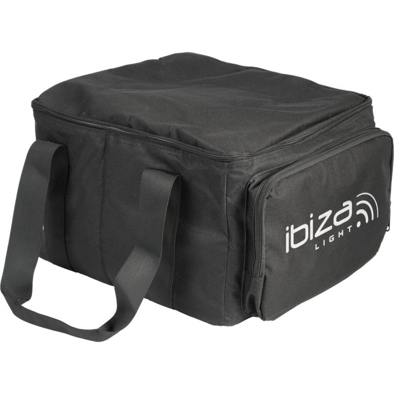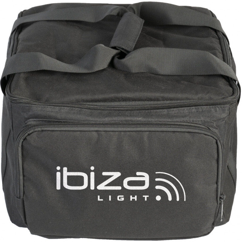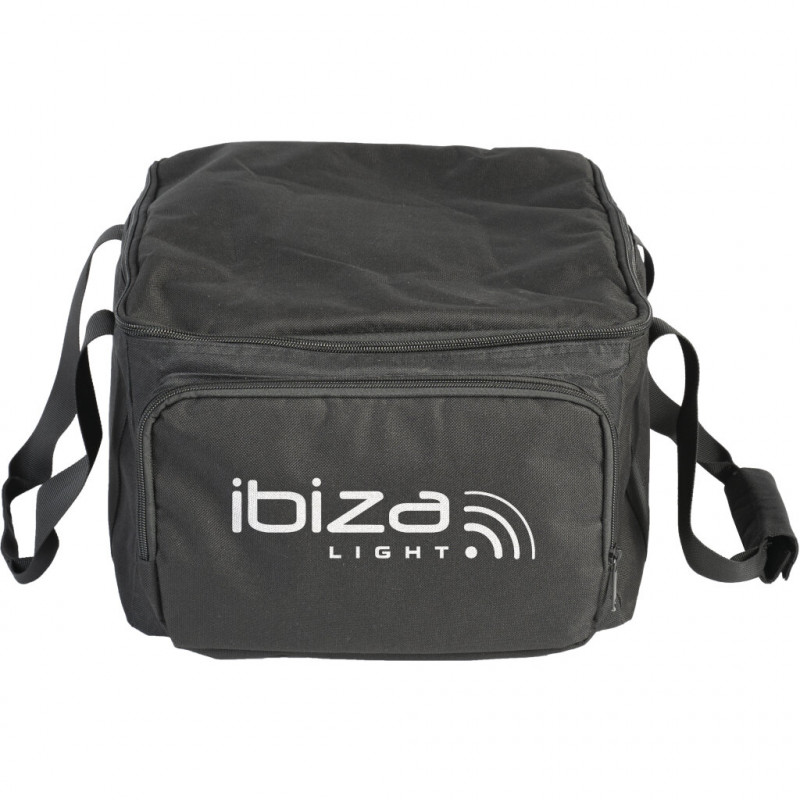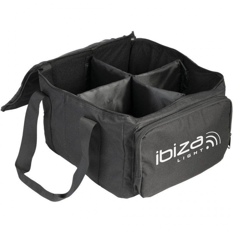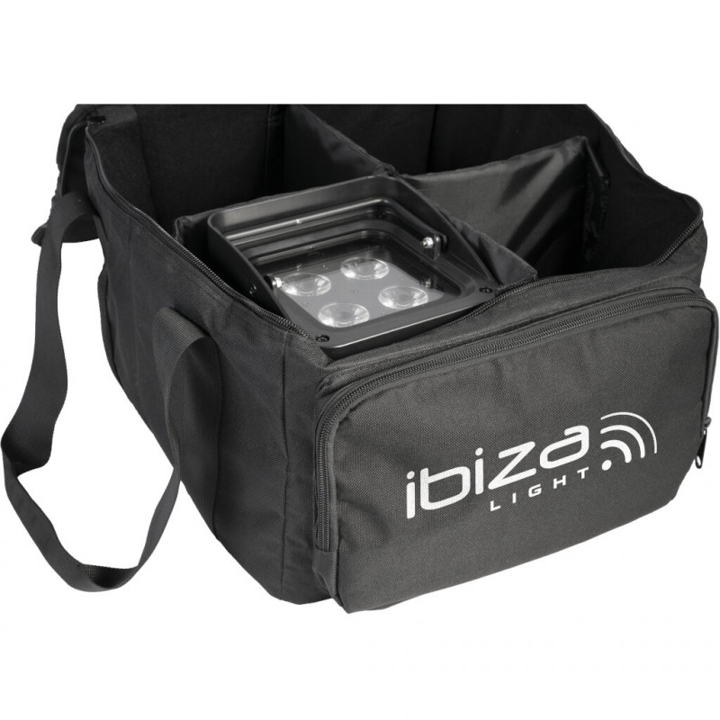 Bolsa de transporte de tela reforzada, equipada con 4 compartimentos metálicos para guardar 4 proyectores alimentados por baterías.