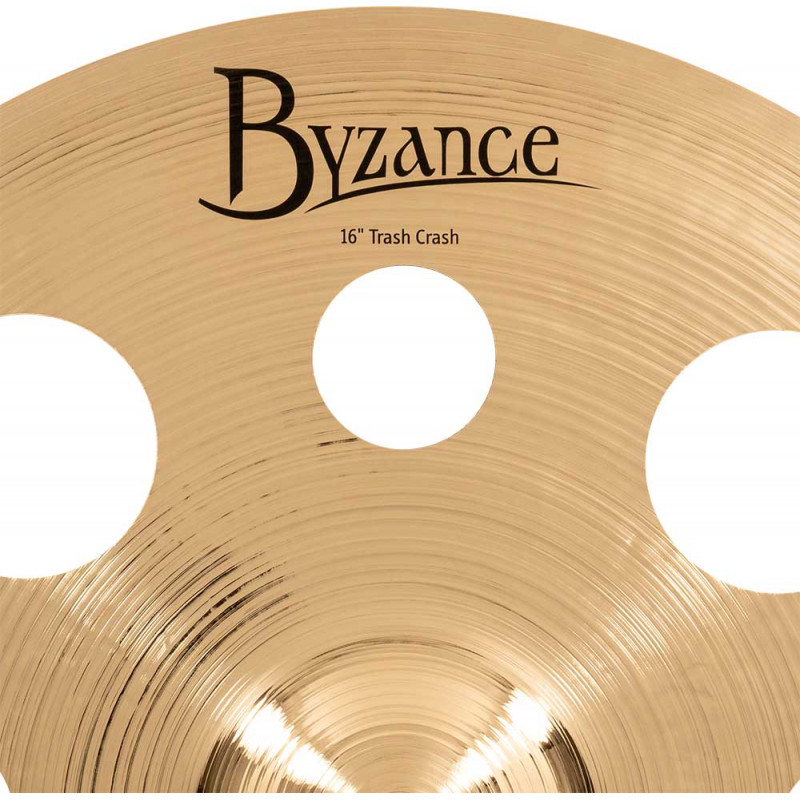 PLATO CRASH 'Trash Crash 16'' Serie Brilliant. Los platos la serie Byzance Brilliant están fabricados artesanalmente en nuentra fábrica de Turquía por las manos de especialistas y respetando la tradición en todo el proceso. Todos los platos están hechos a partir de galletas de aleación de bronce B20. En el proceso intervienen varias técnicas, tanto de martilleado como de torneado. Además de ello reciben un lacado brillante que les infiere un sonido más explosivo y un acabado brillante espectacular.