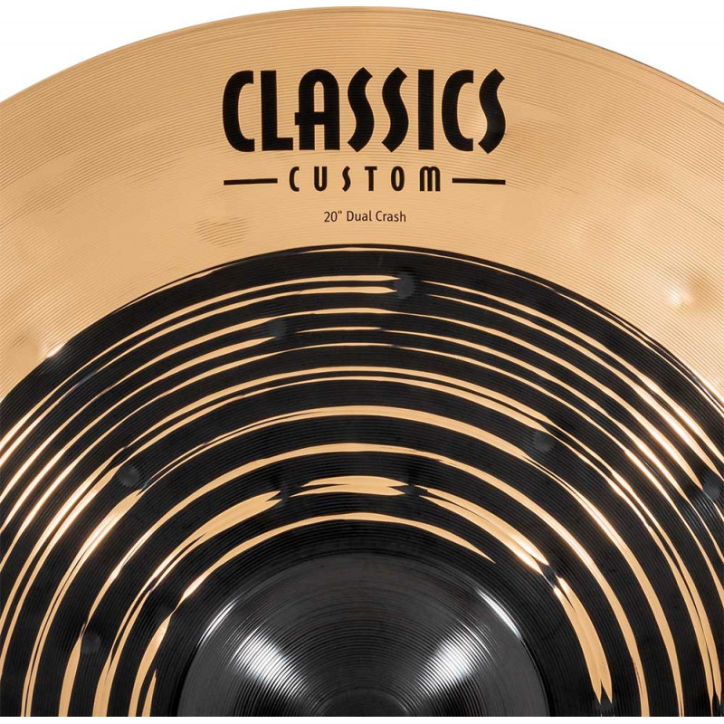 PLATO CRASH 'Classics Custom Dual 20'' Crash. Los nuevos Classics Custom Dual tienen una presencia espectacular. Pero lo es más su propuesta sonora. Basados en un tono cálido, el borde exterior tornado y pulido hace que tenga un tacto flexible así como una respuesta rápida al golpearlos. Además, la parte central oscura hacen que mantenga un carácter explosivo y poderoso. Los platos están hechos en Alemania sobre una aleación B12. También nos parece importante reseñar que están hecho 100% con energía renovable y autoproducida por nosotros mismos.