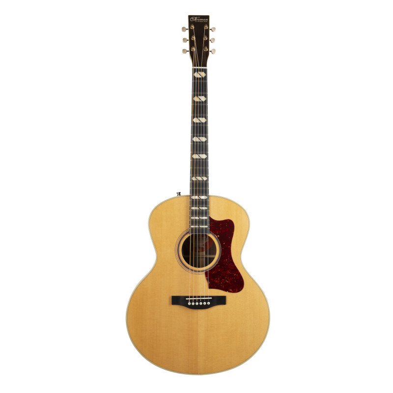 ¡La clásica forma de la Norman Mini Jumbo regresa a lo grande con la ST68 MJ Natural HG Anthem! Con su potente sonido pero con una forma de cuerpo cómoda, la ST 68 MJ destaca dentro de la marca. La guitarra está hecha con aros y fondo de palisandro macizo y tapa de Sitka maciza. Viene con un mástil de caoba que aporta un sonido cálido, con un cómodo diapasón de Richlite e incrustaciones Norman Custom. Además, esta guitarra tiene un golpeador Norman Custom, puente de ébano, el exclusivo refuerzo cónico compuesto de Godin Atelier para optimizar la rigidez superior, la deflexión y la estabilidad estructural junto con la electrónica LR Bagss. La ST68 MJ Natural HG Anthem es una guitarra que destaca en todos los frentes estéticos, al tiempo que aporta una nueva paleta tonal a tu interpretación.