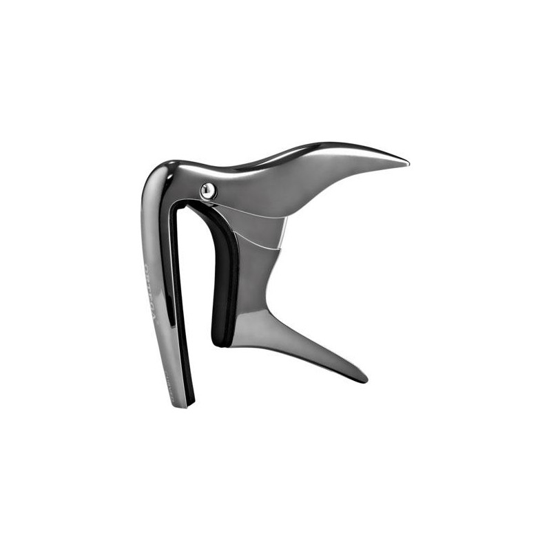 CEJILLA CURVA (ACÚSTICA Y ELÉCTRICA) Cejilla de pinza para diapasones CURVADOS en edición especial black chrome. Fabricada en aleación de aluminio. Cojinetes de silicona. Adecuada para guitarras con cejuelas de hasta 52 mm. INCLUYE PRESENTACIÓN EN CAJA NEGRA SATINADA DE LUJO