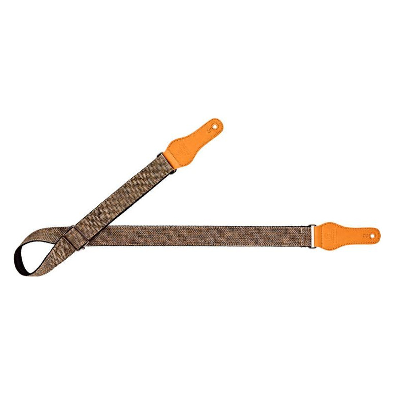 CORREA DE GUITARRA / BAJO Correa de algodón para ukelele de la serie``Casual´´. Color KHAKI. Extremos en poli piel flexible color camel con troquel que se ajusta a cualquier enganche de ukelele. Medidas: 37mm de anchura y 1390mm de longitud máxima.